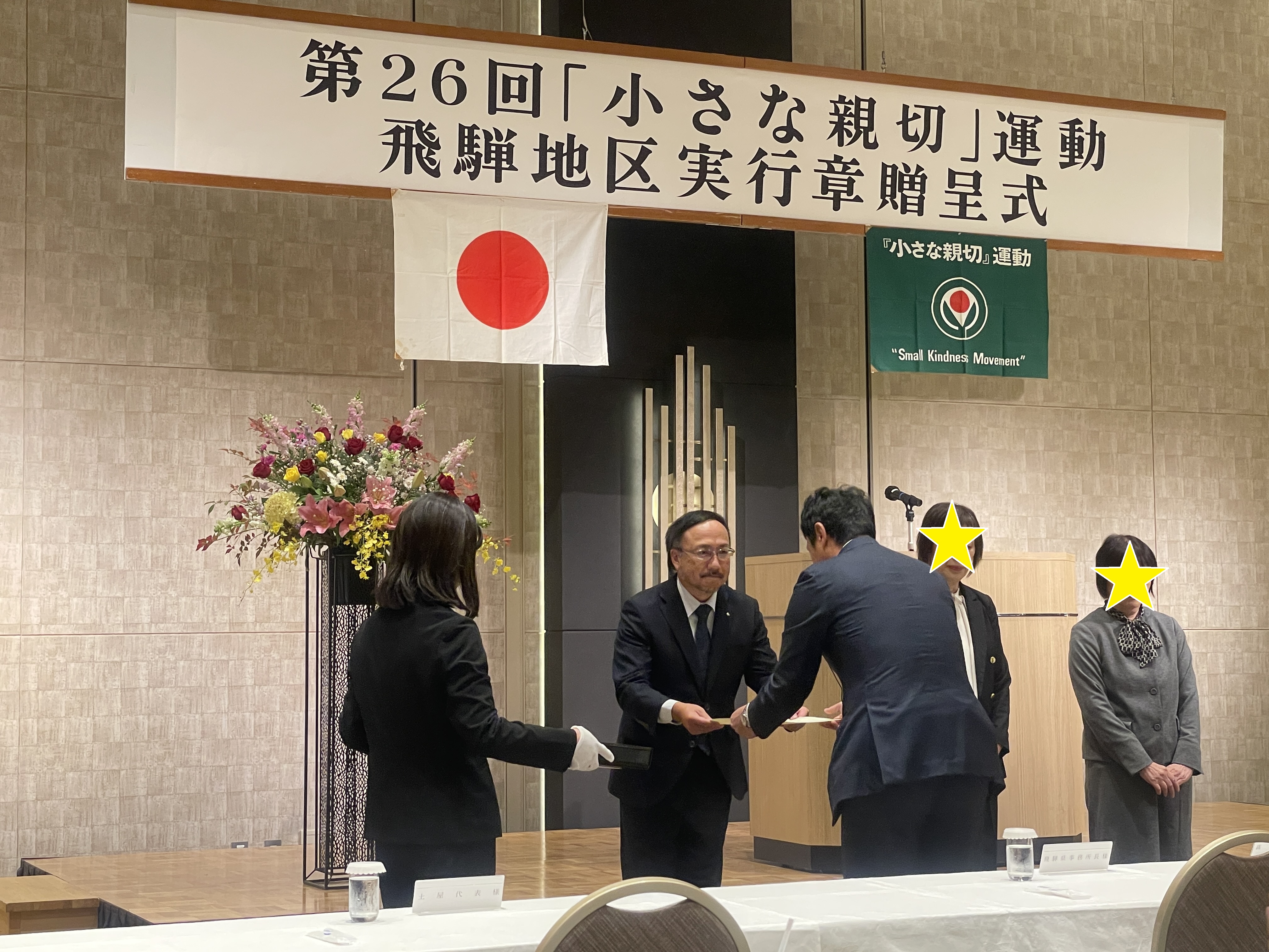 令和7年11月6日に高山グリーホテルにて「小さな親切」運動 第26回飛騨地区実行章贈呈式が行われました。